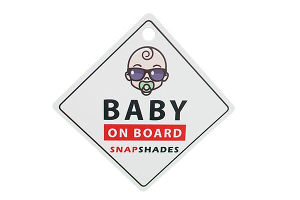 A stylish baby on board sign by Snap Shades. Safety is first!